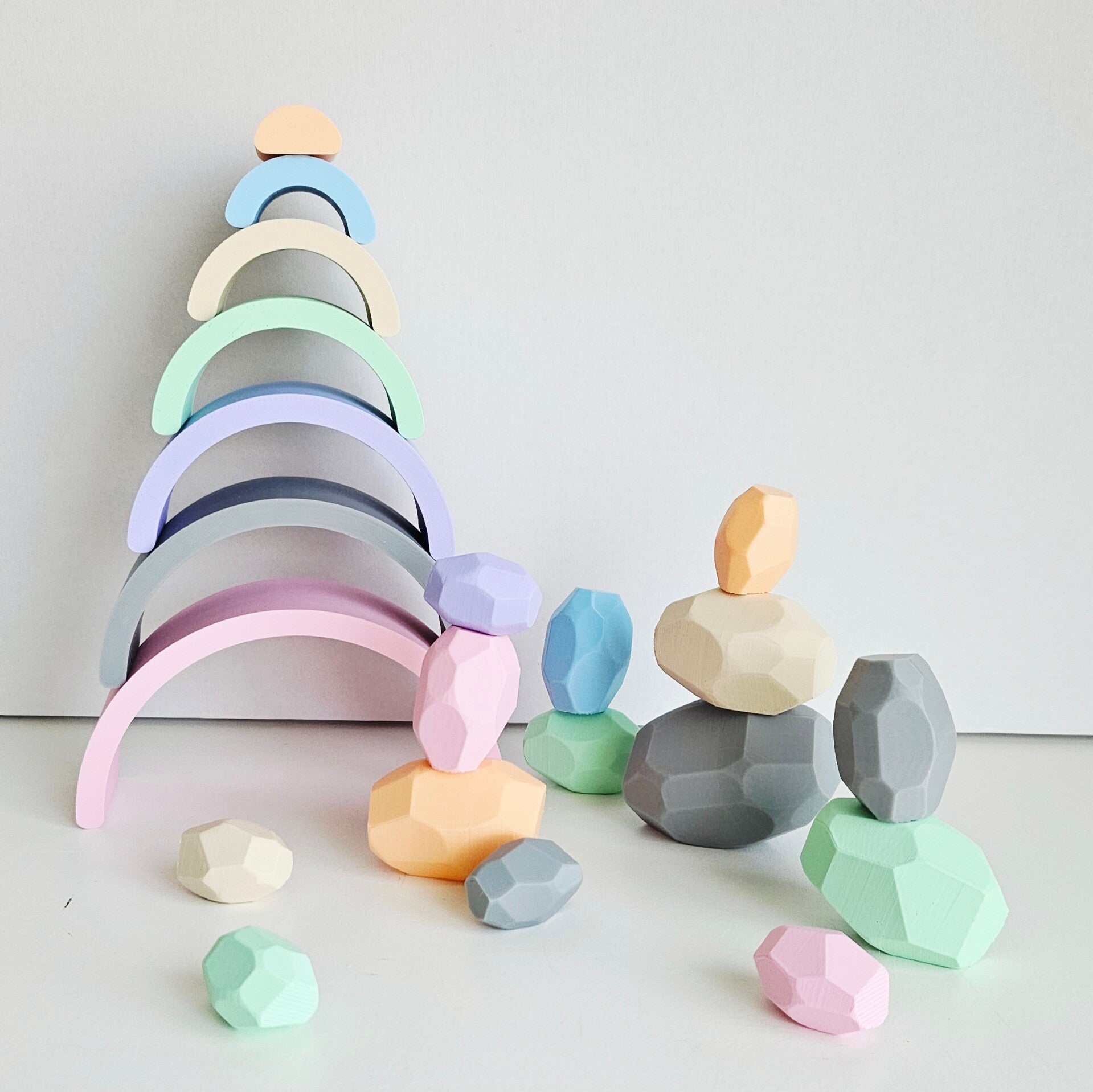 Op zoek naar een speelse én rustgevende activiteit voor kinderen? Dit prachtige balansspel met zachte pastelkleuren nodigt uit tot eindeloos stapelen, bouwen en ontdekken!
