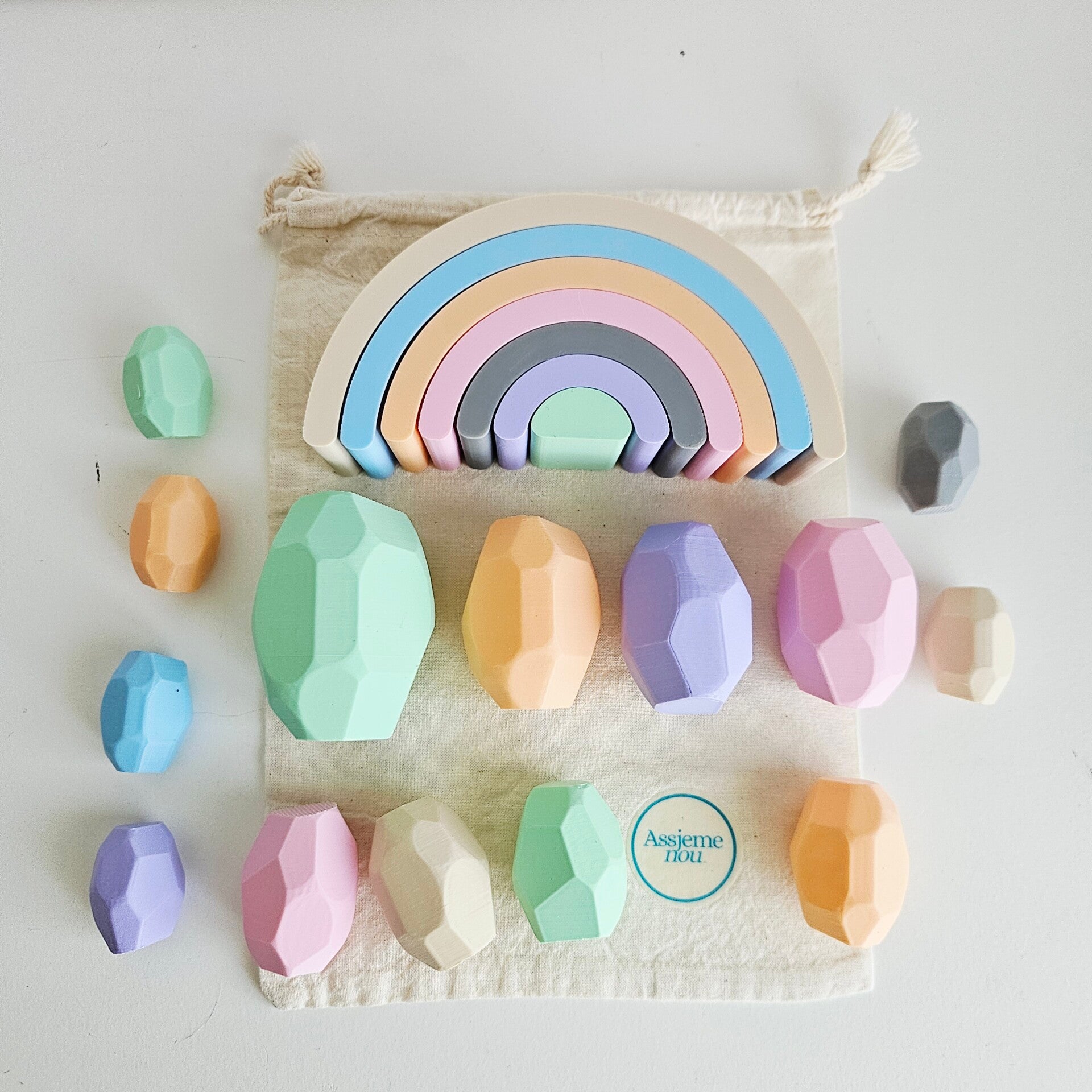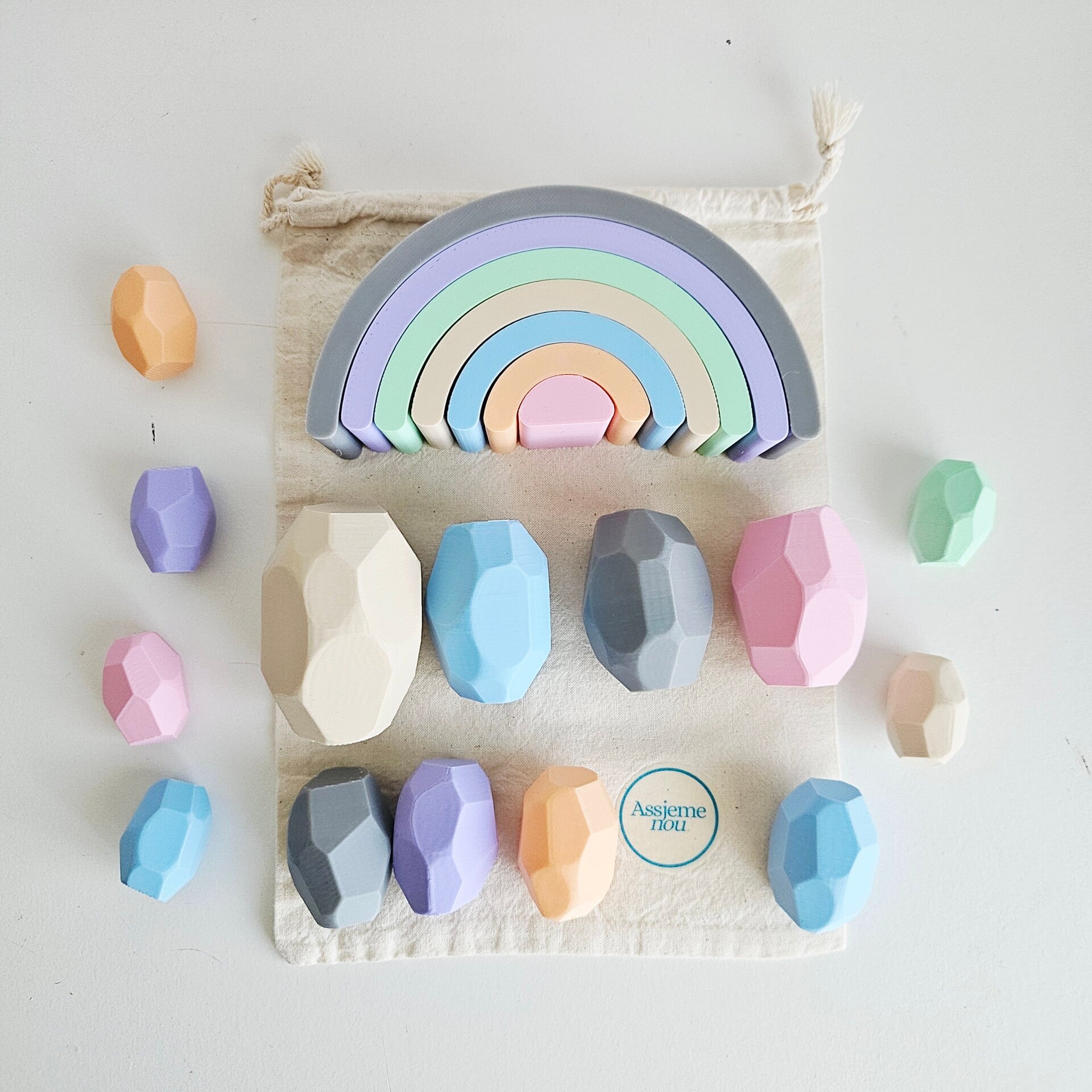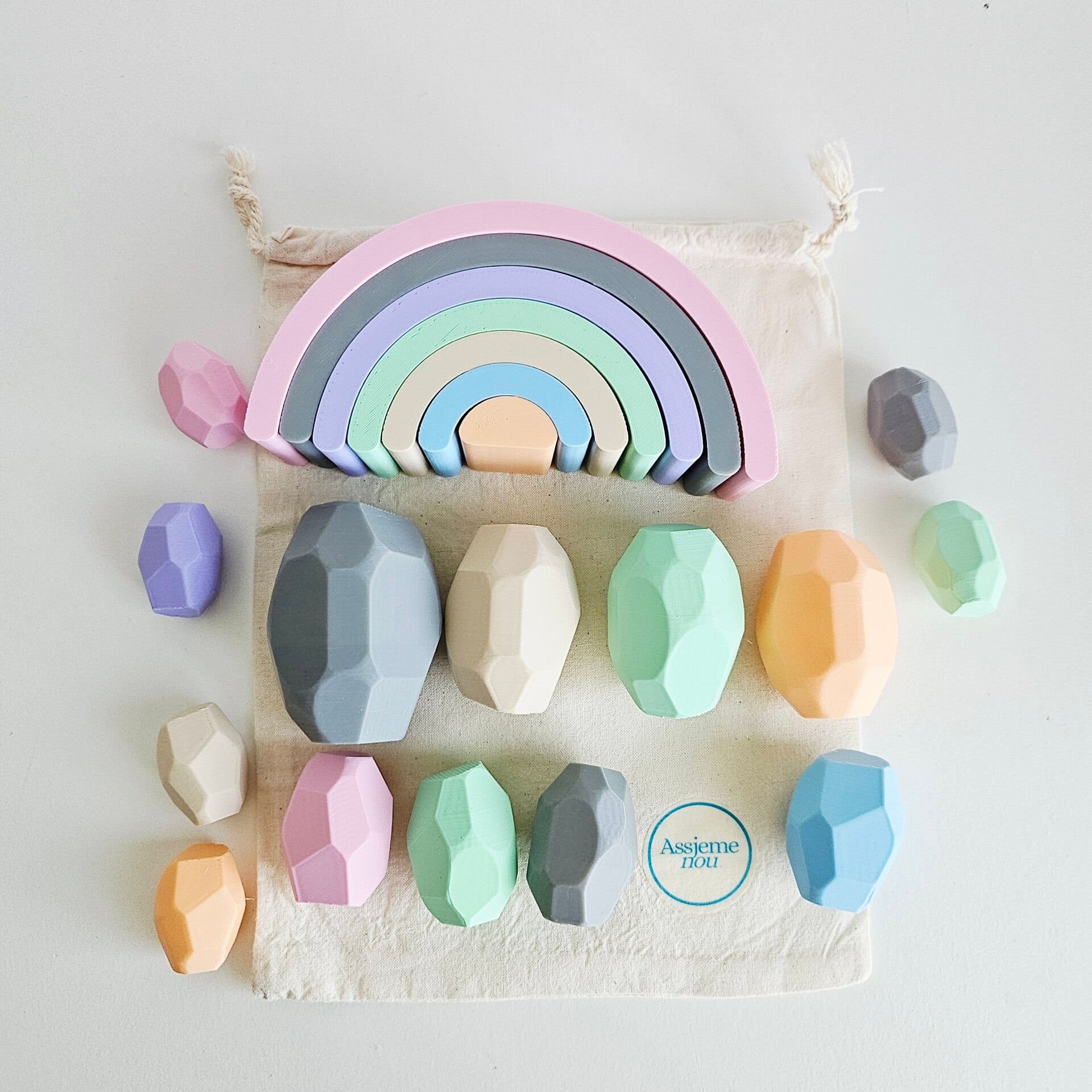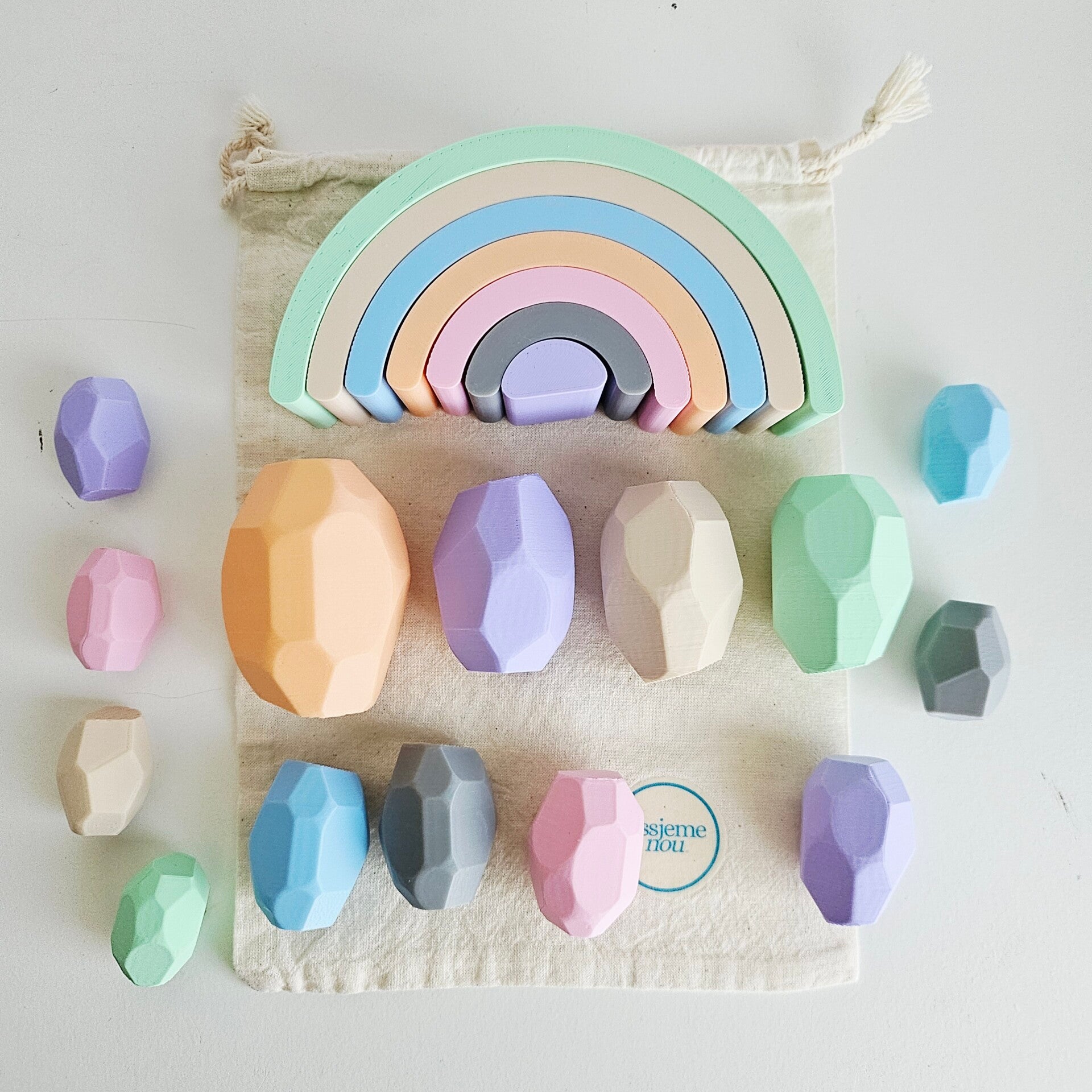 🌈 Creatief balansspel met regenboog & stenen! 🪨