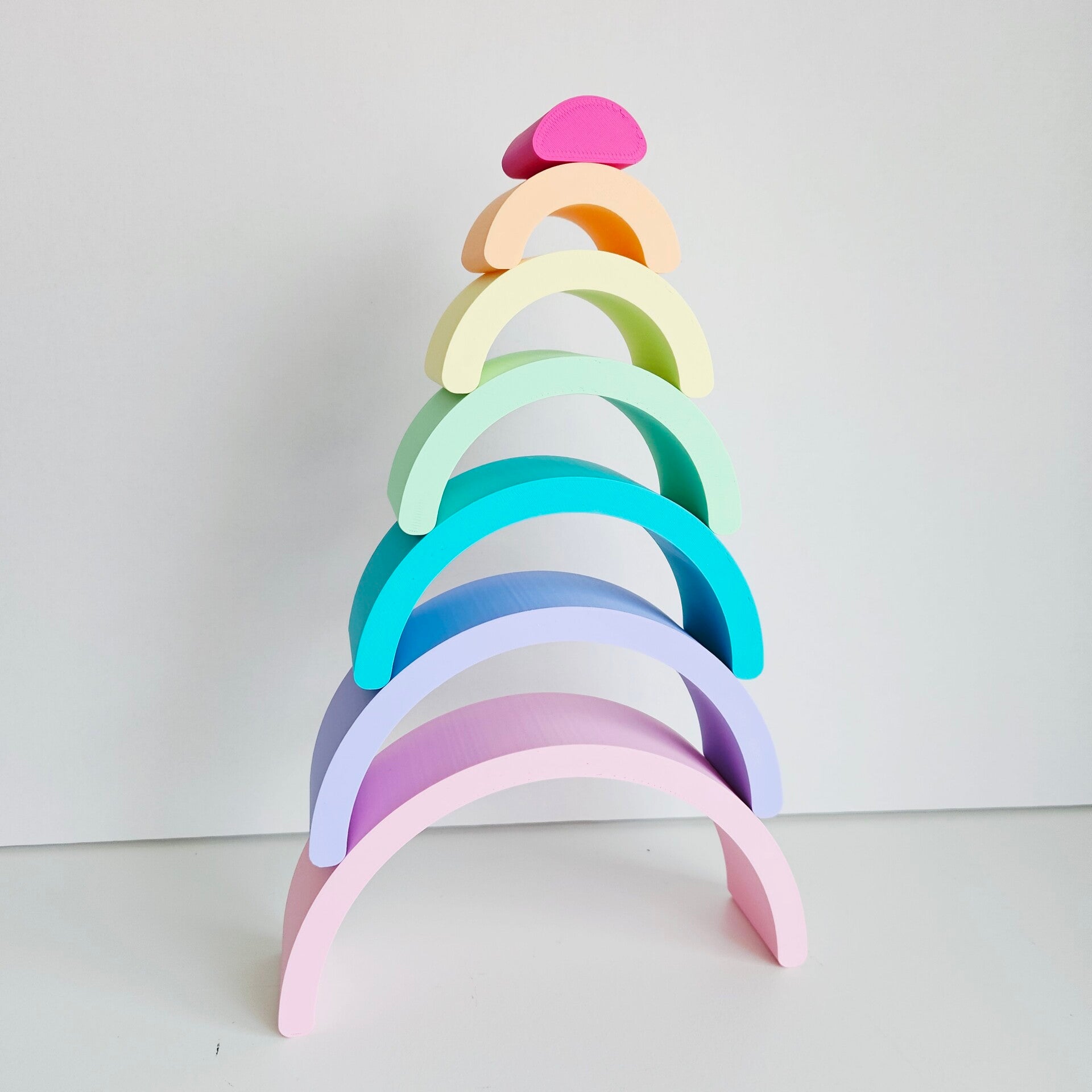 Breng kleur, creativiteit en rust in huis met deze prachtige handgemaakte regenboog! Deze 3D geprinte regenboog is niet alleen een leuk speelgoed, maar ook een stijlvolle toevoeging aan elke kinderkamer of woonkamer.
