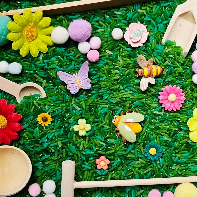 Speelrijst is een magisch, kleurrijk en knisperend spul dat kinderen kunnen voelen, scheppen, graven en ontdekken. Het is gewoon rijst die soms een beetje is ingekleurd of geurt, maar het voelt voor kinderen als zand, sneeuw of zelfs een klein avontuur in een bak! π